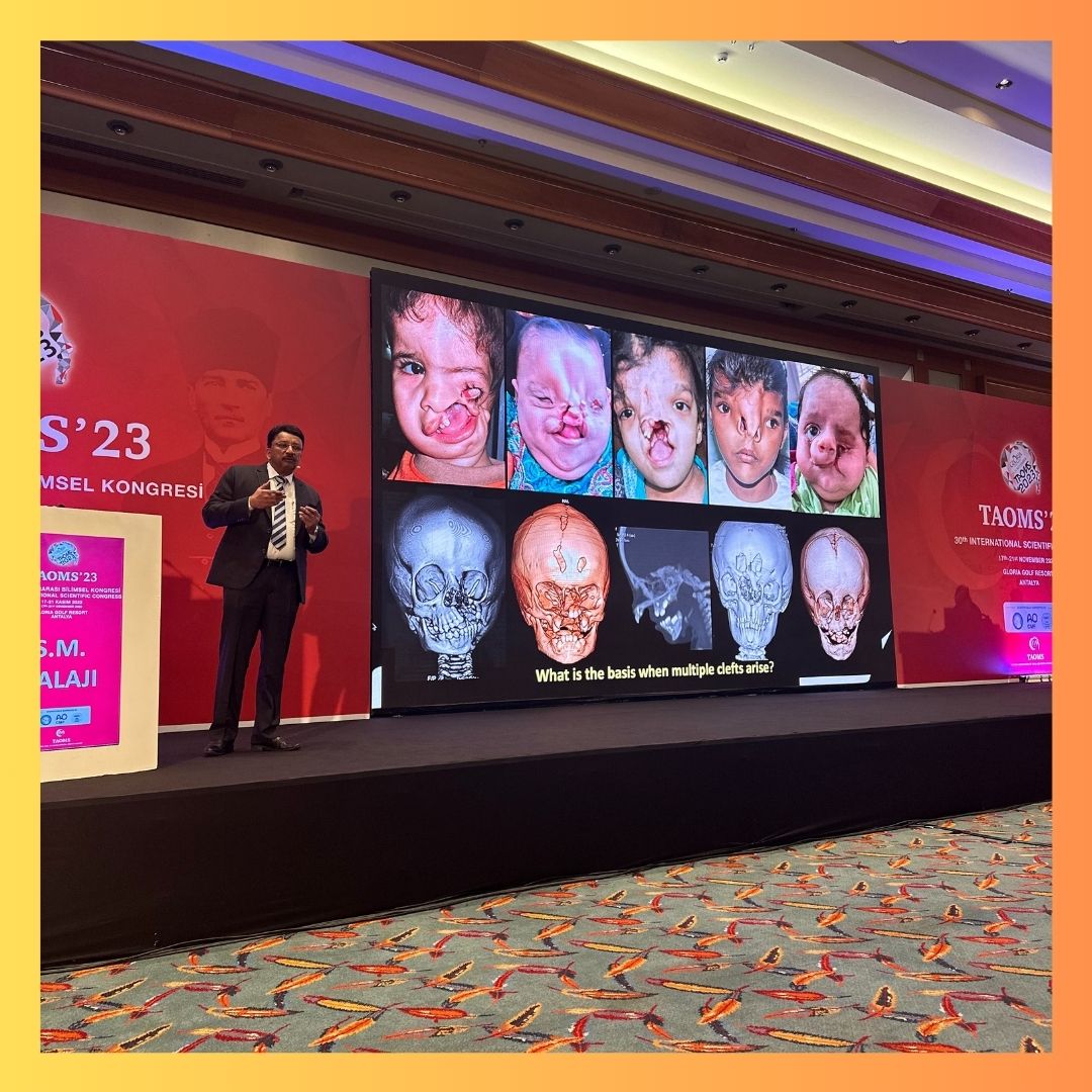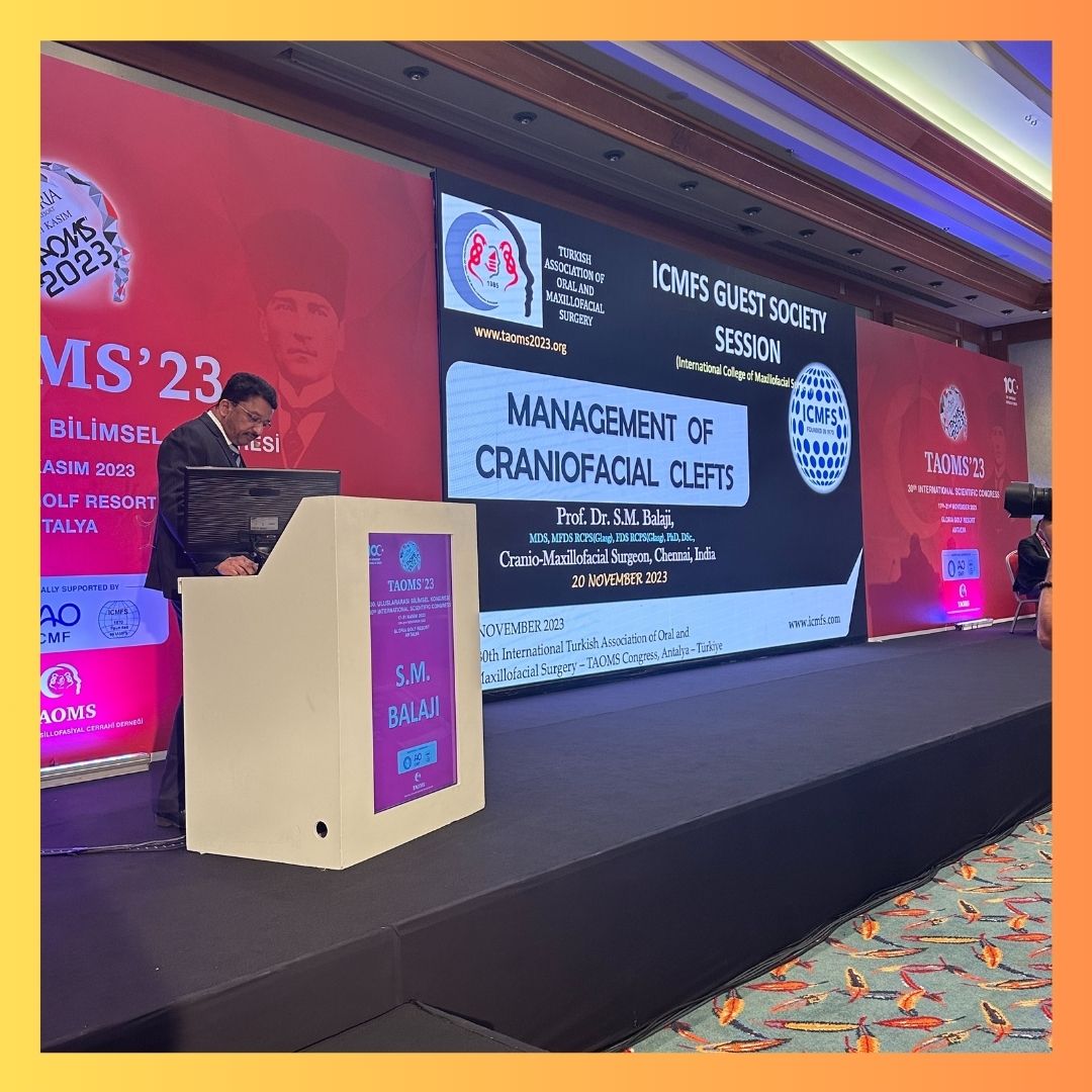 Prof. Mohammed Sartawi, a renowned surgeon from the Middle East, shared his insights and experiences. Known for his expertise in Access Osteotomy to the brain, Prof. Satarwi is pushing the boundaries of Craniofacial Surgery. His presentation, “Craniomaxillofacial Reconstruction”, provided valuable insights into his work on some of the most complex and rare cases. Finally, Prof. S. M. Balaji, Secretary of ICMFS, spoke on the management of Craniofacial Clefts.